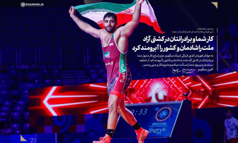 پیام رهبر معظم انقلاب در پی قهرمانی مقتدرانه تیم ملی کشتی فرنگی ایران در جهان