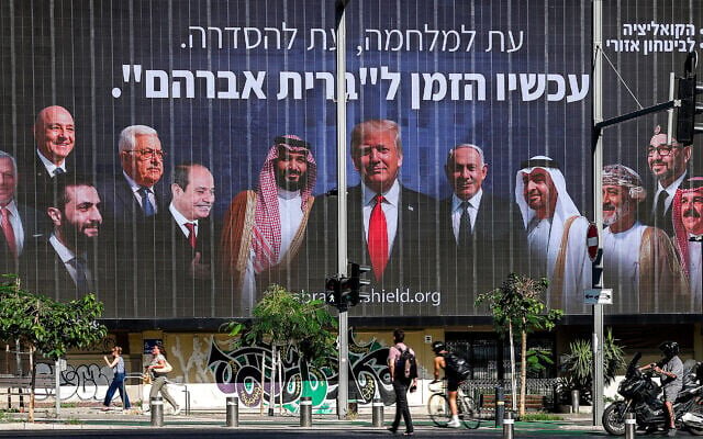 پس از اجرای آتشبس ایران و اسرائیل در جنگ تحمیلی ۱۲ روزه، در تلآویو در مرکز این شهر بیلبوردی را نصب کرد که در مرکز تصویر دونالد ترامپ، رئیس جمهور آمریکا و پشت او بنیامین نتانیاهو، نخستوزیر اسرائیل و اطراف این دو را رهبران کشورهای عربی احاطه کرده بودند. روی این بیلبورد عبارت «پیمان ابراهیمی جدید» خودنمایی می کند. این تبلیغات در اسرائیل نشان از آغاز فرآیند «طرح خاورمیانه جدید» از سوی آمریکا و اسرائیل دارد. تحرکات دیپلماتیک برای عملی کردن این طرح پس از آتش بس ایران و اسرائیل به طور گسترده در منطقه دیدهمیشود. این در حالی است که نتانیاهو با هدف گفت و گو در خصوص ایران، غزه و توافقهای ابراهیم (توافقنامههای عادیسازی روابط دیپلماتیک با کشورهای عربی منطقه) با محوریت سوریه دوشنبه هفته آینده به کاخ سفید می رود.