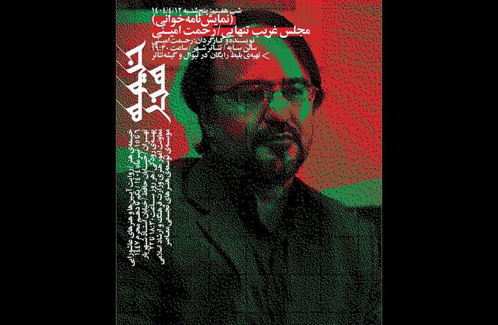 نمایشنامه «مجلس غریب تنهایی» با الهام از ساختار برخوانیهای بهرام بیضایی و با بهرهگیری از عناصر تعزیه، به قلم رحمت امینی نوشته شده و با خوانش خود او روی صحنه میرود. این اثر کوششی برای پیوند میان سنتهای نمایشی ایرانی و روایتهای معاصر است.