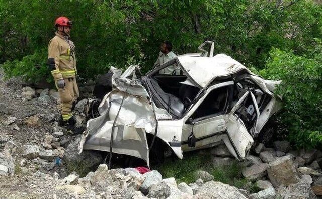 سقوط یک دستگاه خودرو در این محور شمالی؛ پراید مچاله شد/ عکس