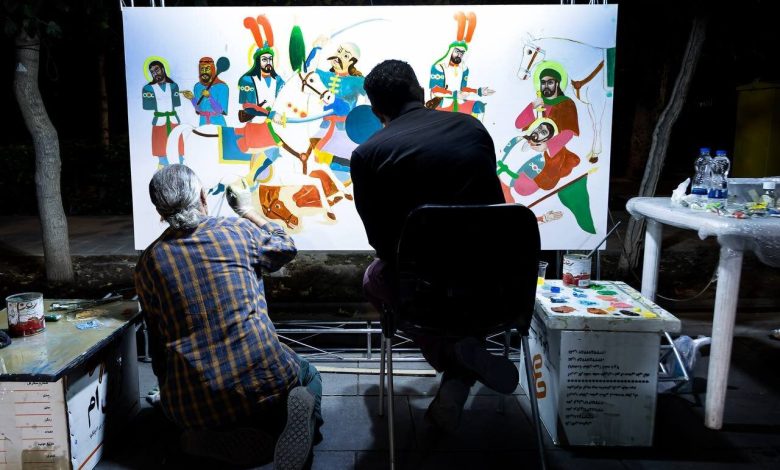 به گزارش خبرگزاری خبرآنلاین، آیدین مهدیزاده مدیرکل هنرهای تجسمی وزارت فرهنگ و ارشاد اسلامی درباره پروژه هنرهای تجسمی در «خیمه هنر» گفت: «بخشی از ارائههای هنری در ویژهبرنامه «خیمه هنر» به هنرهای تجسمی اختصاص دارد؛ آثاری که بهنوعی با واقعه عاشورا و مفاهیم مرتبط با کربلا پیوند دارند. دوستان هنرمند با نگاهی همدلانه، در این روزها آثاری را در این فضا خلق کردهاند. تا شامگاه هشتم محرم، طبق آماری که همکارانم جمعآوری کردهاند، حدود ۶۵ هنرمند در پهنه رودکی حاضر شدند و مشغول به خلق اثر شدند. بعضی از این هنرمندان تنها چند ساعت در برنامه حضور داشتند و برخی دیگر چند روز در محل مشغول کار بودند.»