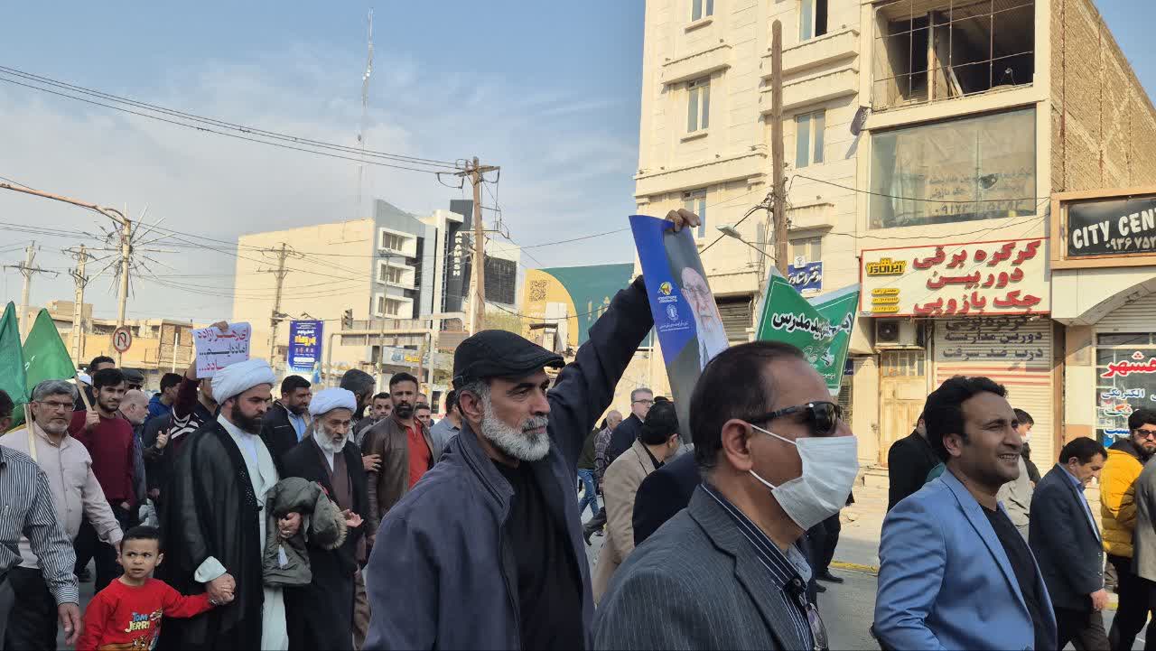 راهپیمایی علیه عناصر تخریبگر و تروریست های مسلح وابسته به آمریکا و صهیونیست در بندرماهشهر